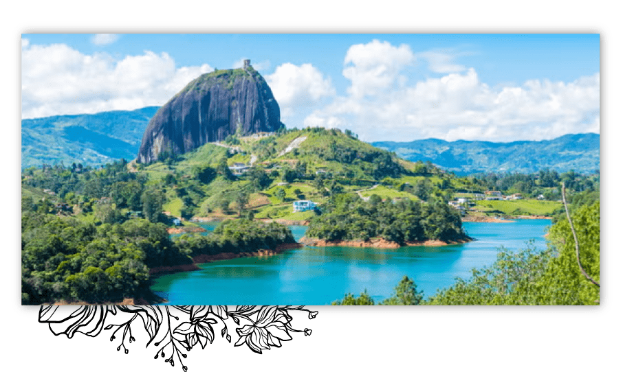 Tal vez uno de los lugares más visitados en todo Colombia. Guatapé es naturaleza, cultura y color. Es una experiencia única que te lleva a admirar el arte en cada zócalo plasmado en el pueblo, observar los habitantes de la zona, probar un café colombiano y apoyar la economía local. El lugar perfecto para conectarse con la naturaleza, cultura y diversión.